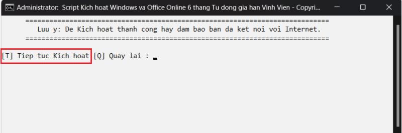 - Hành động 2: Bấm phím T để tiếp tục Active